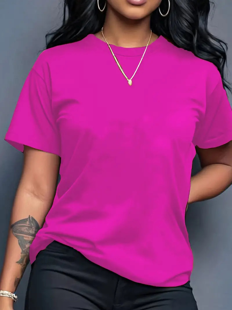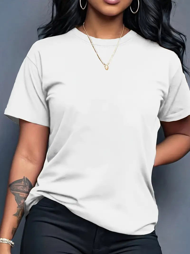 Camiseta básica de color sólido con cuello redondo, camiseta casual de manga corta para primavera y verano, ropa de mujer.