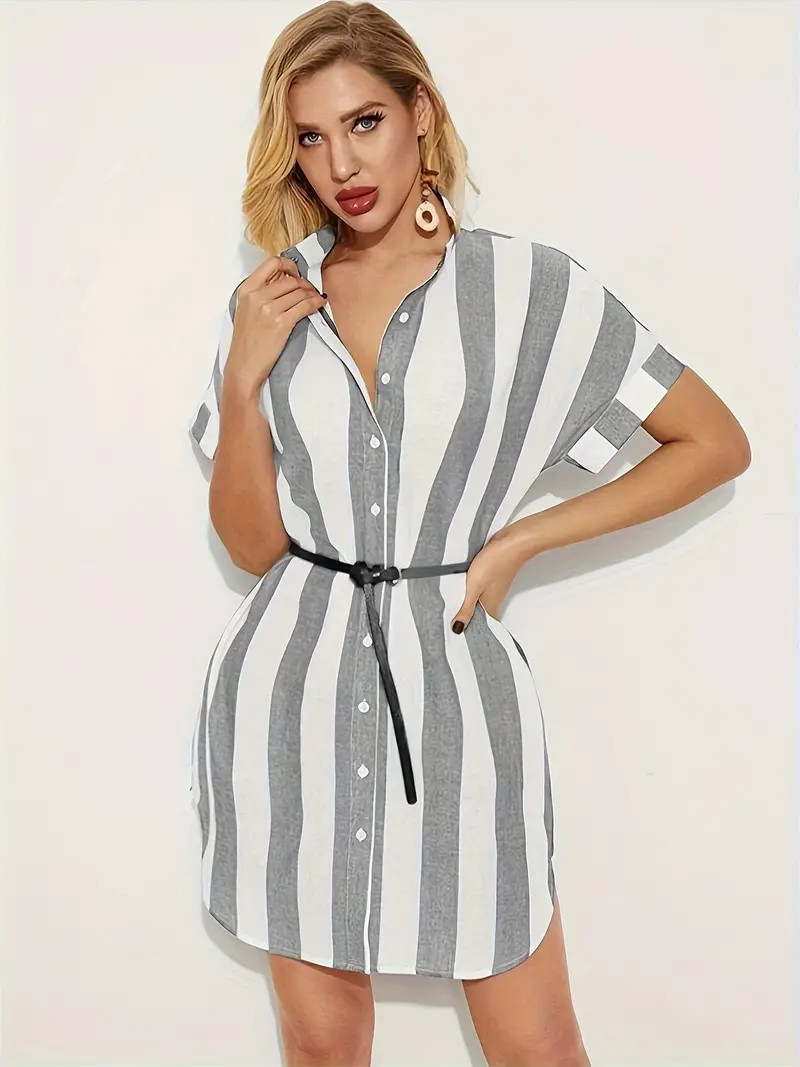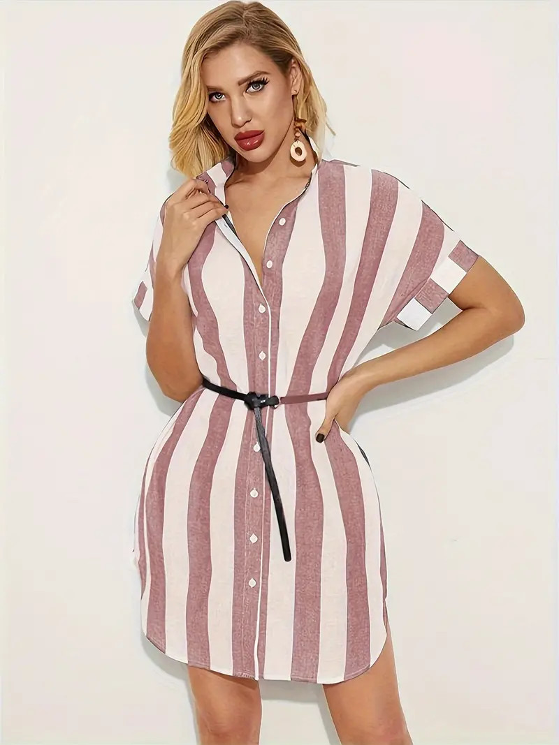 Vestido corto de manga corta con estampado de rayas, estilo vacacional para primavera y verano, ropa de mujer